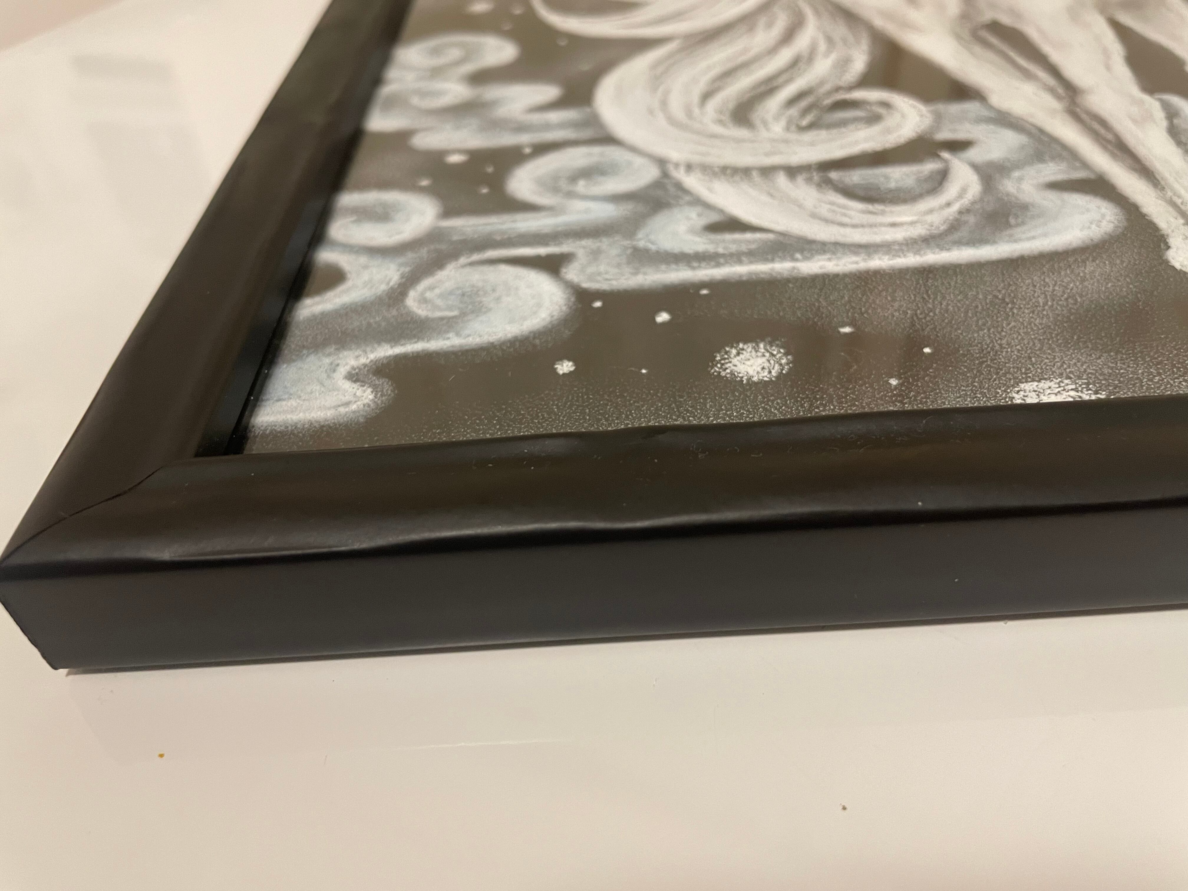 (額縁はマットタイプの黒で、少し波打ったようなデザインで高級感があります。)