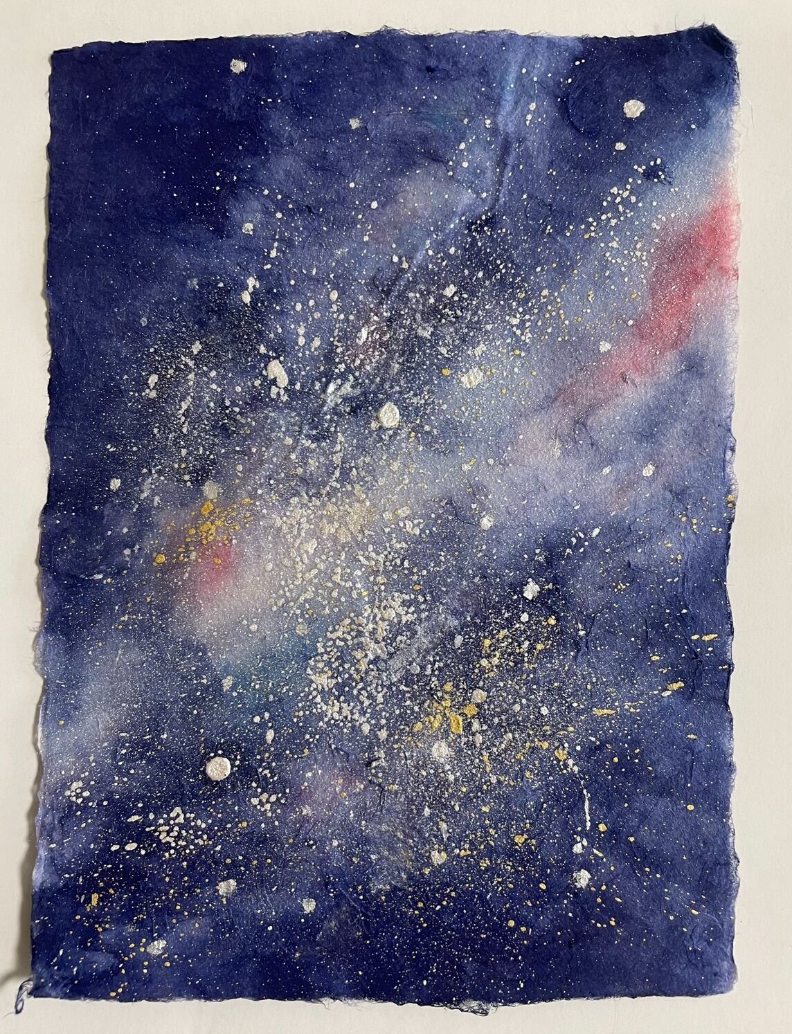 手漉き和紙、ソフトパステル、アクリルガッシュ。
